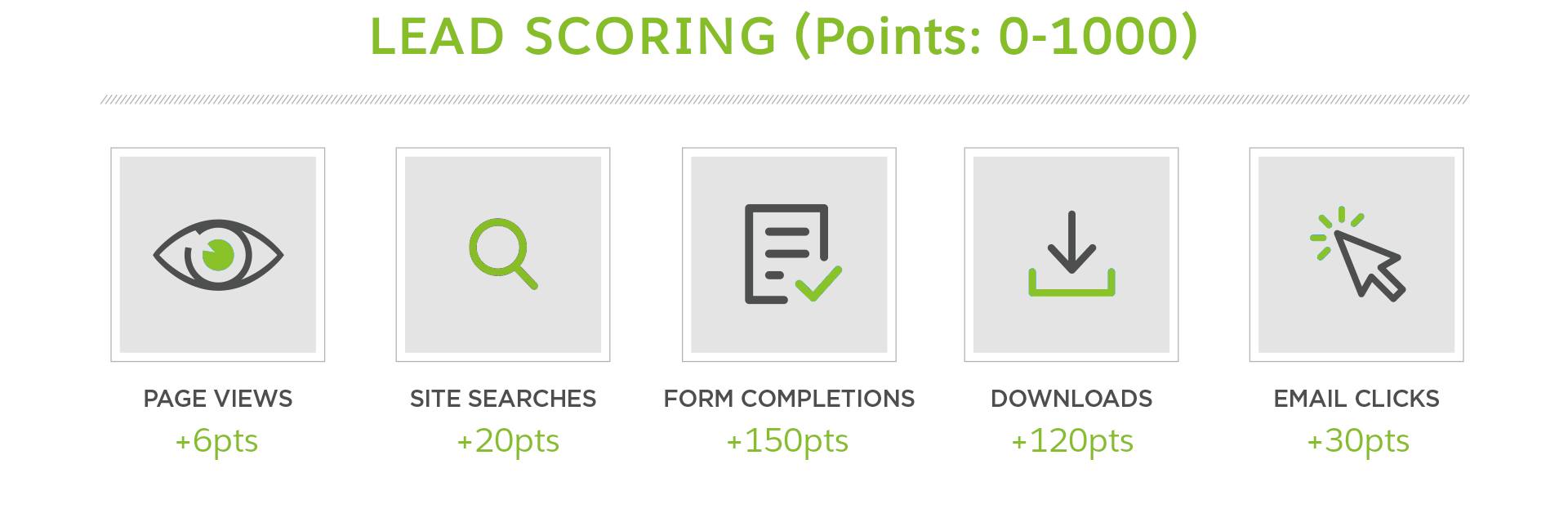 - By recording their interactions with your marketing content (Leads get a Score).